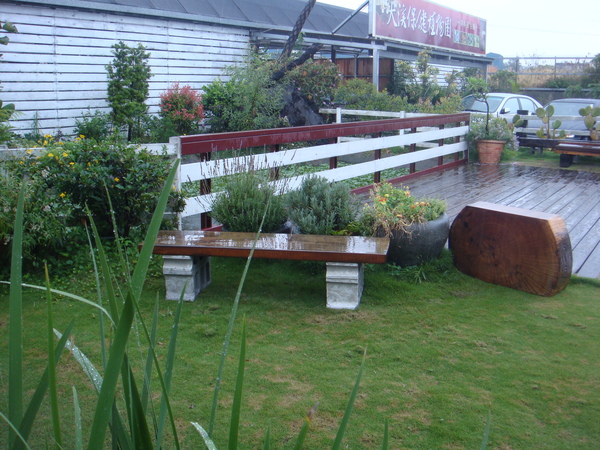 一到園區,正看著園長細心的在修剪園內的植物,一旁還有員工正在用亞麻仁油擦拭保養著他們的原木傢俱.